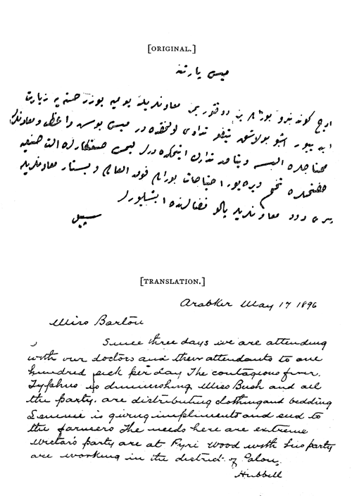 CLARA BARTON, American Legation, Constantinople.
