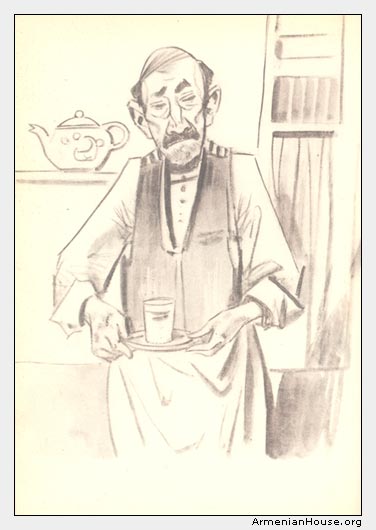 չթվա, որ այդ առավոտ, երբ, մոտավորապես ժամը 11–ին, դուրս եկան Կարո Դարայանը և պ. Մարուքեն «Դառնության կենտրոնից» և, տուն վերադառնալով, անցնում էին արդեն վարսավիրանոցի մոտից — «Անուշնե՛ր» — հեգնախառն ասաց վարսավիր Վասիլը պ. Մարուքեին— և դա ծա՛ղր էր, ծա՛ղր էր, չարախինդ ակնարկ էր պ. Մւսրուքեի հասցեին։ Եվ պ. Մարուքեն, իհարկե, հասկացավ վարսավիր Վասիլի այդ հեգնանքը, պ. Մարուքեն հասկացավ, բայց լռեց։