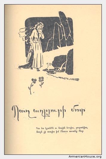 | Աղբյուր. Ջիվանու քնարը: [Ստեղծագործությունների ընտրանի] / Կազմ., առաջաբ., տեքստ. համեմատ., ծանոթագր. ՝ Ա. Սահակյան; Խմբ.՝ Միք. Հարությույան; Նկ.՝ Ան. Գասպարյան։ «Հայպետհրատ»։ Երևան 1959 |
