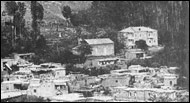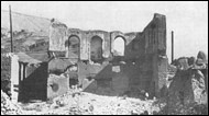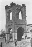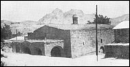 Նկ. 53 Մի հատված Քաղաքիկից՝ կենտրոնական մասում զանգակատնով եկեղեցին և Գևորգյանների եռահարկ բնակելի տունը (1910-ական թվականներին)