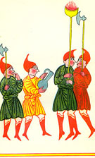 пляшущий и играющий на трубе.