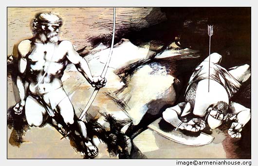 — Ինչո՞ւ ես ինձ զուր հետապնդում, վերադարձիր քո տեղը, որպեսզի այսօր չմեռնես իմ ձեռից, քանզի իմ նետը բնավ չի վրիպում։
