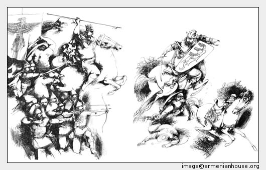 Այս բոլոր արշավանքները, ավարներն ու ավերները մեծապես շփոթեցնում, նեղում ու մոլորեցնում են Արտաշիրին։ Նա իր մոտ է կանչում երկրի բոլոր թագավորներին, կուսակալներին, նախարարներին ու զորավարներին և խորհրդի նստում։ Արտաշիրը բոլորին աղաչում էր հնար գտնել, խնդրում, մեծամեծ պարգևներ էր խոստանում, ասում.
