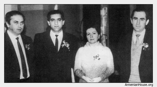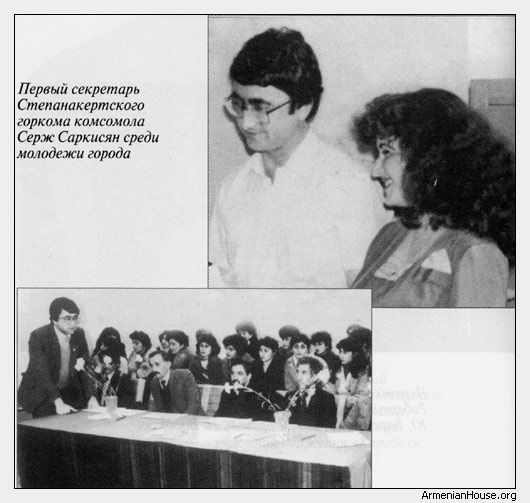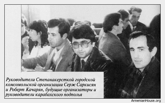 Первый секретарь Степанакертского горкома комсомола Роберт Качарян с активистами-комсомольцами Ю. Барсегяном, С. Григоряном, Н. Восконян