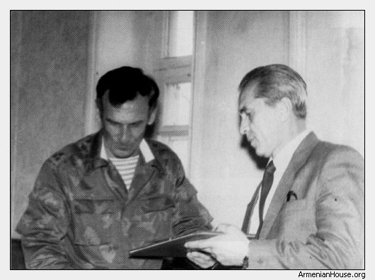 Начальник УВД НКАО генерал В. Ковалев и начальник СОГ МВД СССР полковник В. Гудков, Степанакерт, 1990 г.